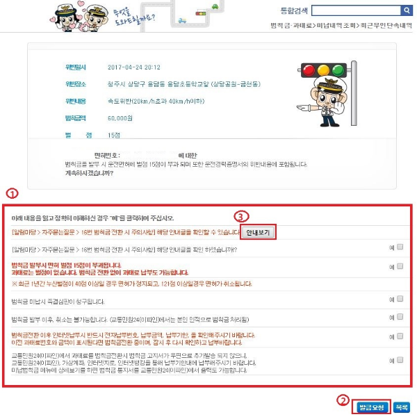 (범칙금 전환 시, 포스팅 맨아래 'FAQ(자주묻는질문)'의 범칙금 전환 시 주의사항을 반드시 확인하시기 바랍니다.