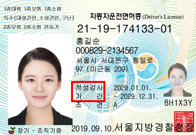 (단, 면허증 앞면에 '적성검사 기간'이라고 표시된 면허에만 적용)